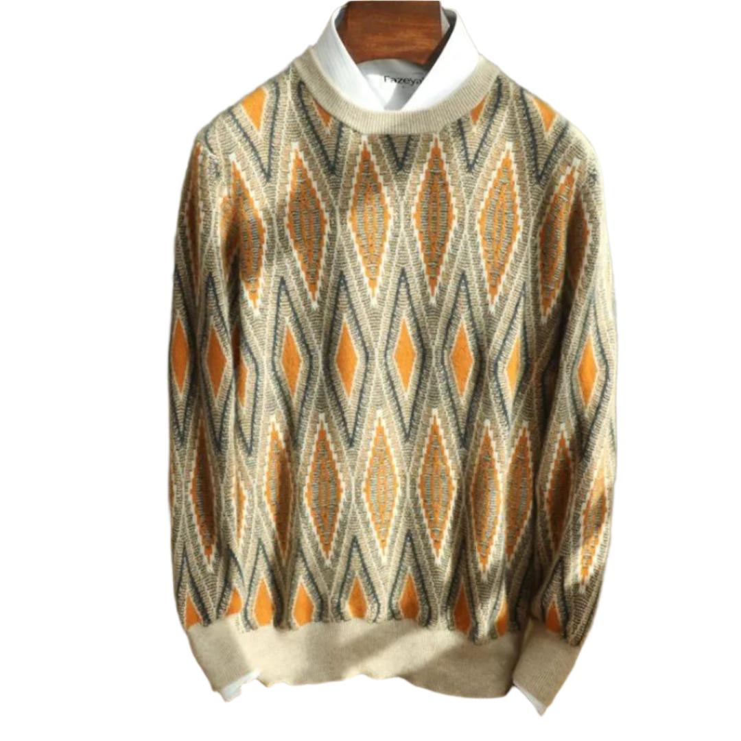 Men’s Retro Knit Sweater | Diamond Pattern Crewneck | Soft Midweight Pullover