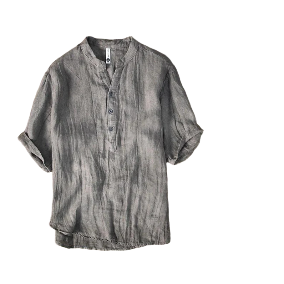 Linen-Blend Grandad Collar Shirt | Relaxed Fit & Rolled Sleeves