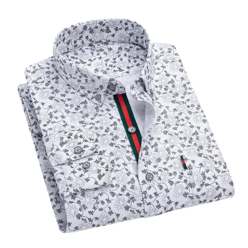 Men’s Printed Dress Shirt | Slim Fit Long Sleeve | Contrast Stripe Placket