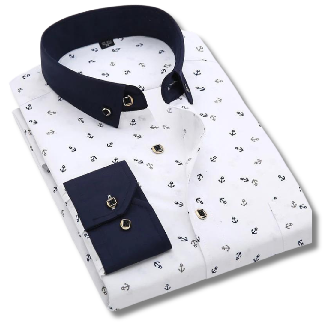 A sharp dress shirt that brings personality to your workwear and evening looks. Crafted from breathable cotton blend with a slim fit, it features a playful anchor print and bold contrast collar and cuffs. Versatile enough for office meetings, date nights, or casual Fridays in Canada.