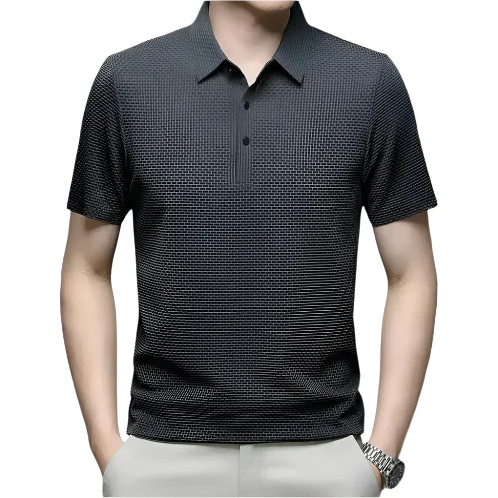Elevate your everyday wardrobe with this men’s textured knit polo shirt—combining clean style with breathable comfort. Made from a soft, stretchy knit fabric, it features a subtle geometric texture, a classic three-button placket, and a modern slim fit. Perfect for business-casual offices, weekend outings, or summer layering in Canada’s warmer months.