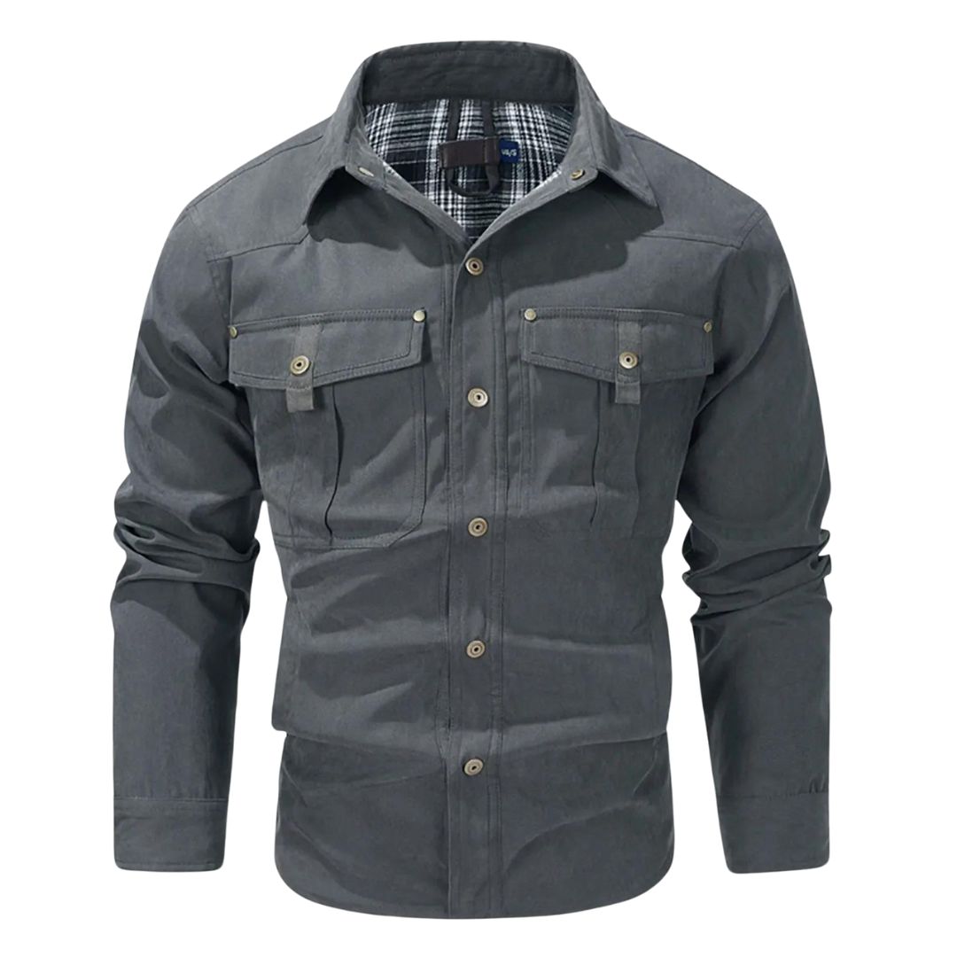 This flannel-lined work shirt blends rugged utility with cool-weather comfort—ideal for fall layering in Canada. Built from thick cotton twill with a plaid inner lining, it works double-duty as a lightweight jacket or overshirt. Snap button pockets and reinforced seams give it a practical edge for work, errands, or casual outdoor wear.