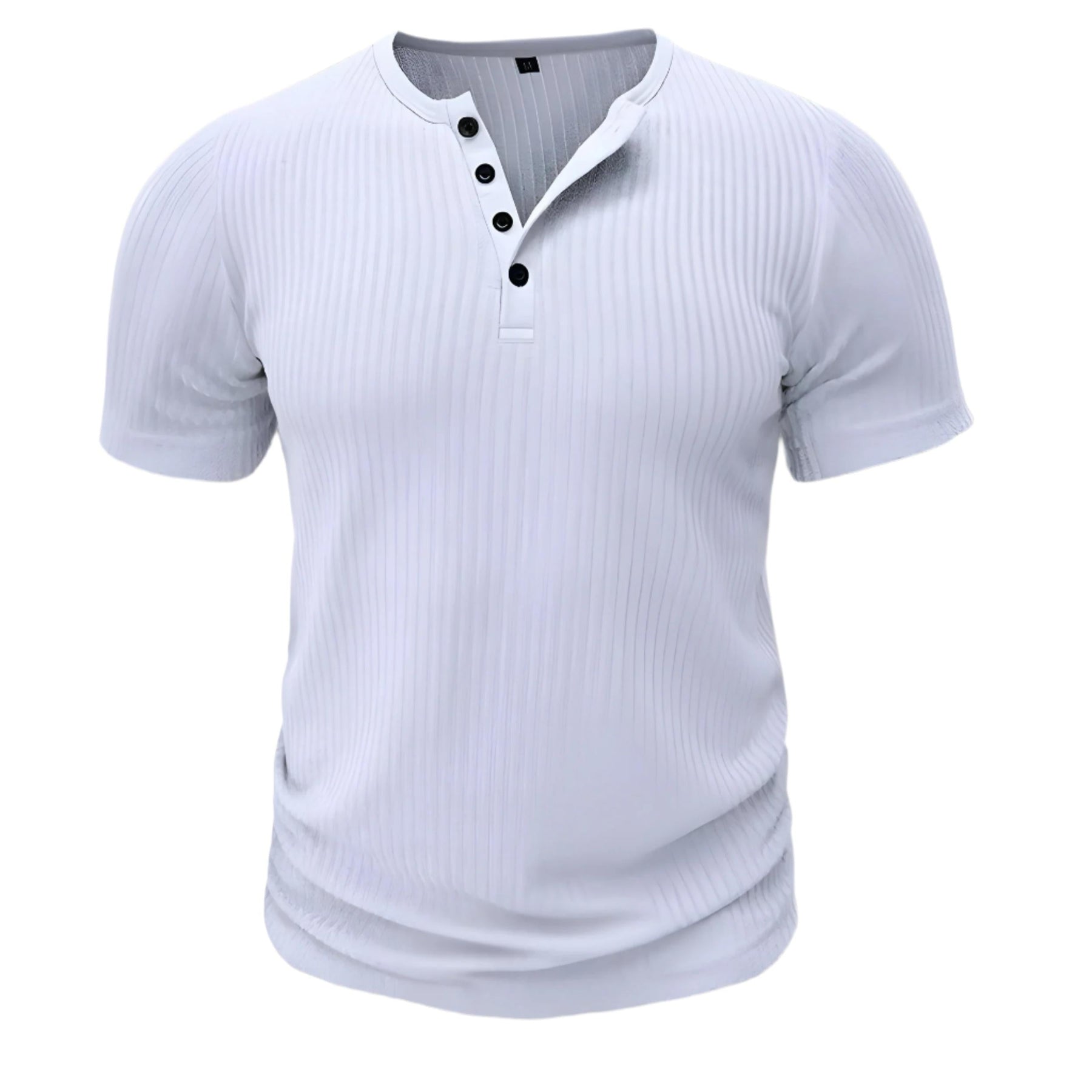Designed for effortless everyday wear, this ribbed Henley tee blends stretch comfort with casual refinement. The slim fit and vertical rib texture provide a flattering silhouette, while the buttoned placket adds classic detail. Lightweight and breathable, it's perfect for summer in Canada or as a base layer in cooler transitional months.