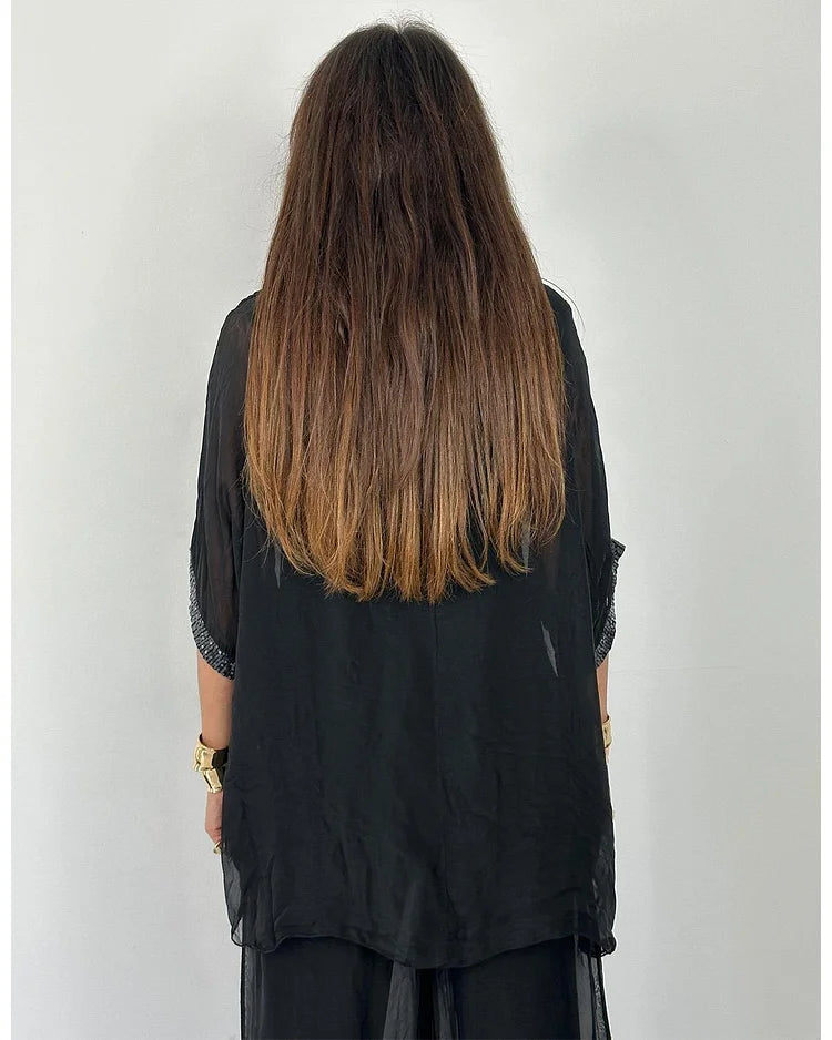 Beautiful piece — the fabric feels soft and luxurious, and the fit is very flattering.