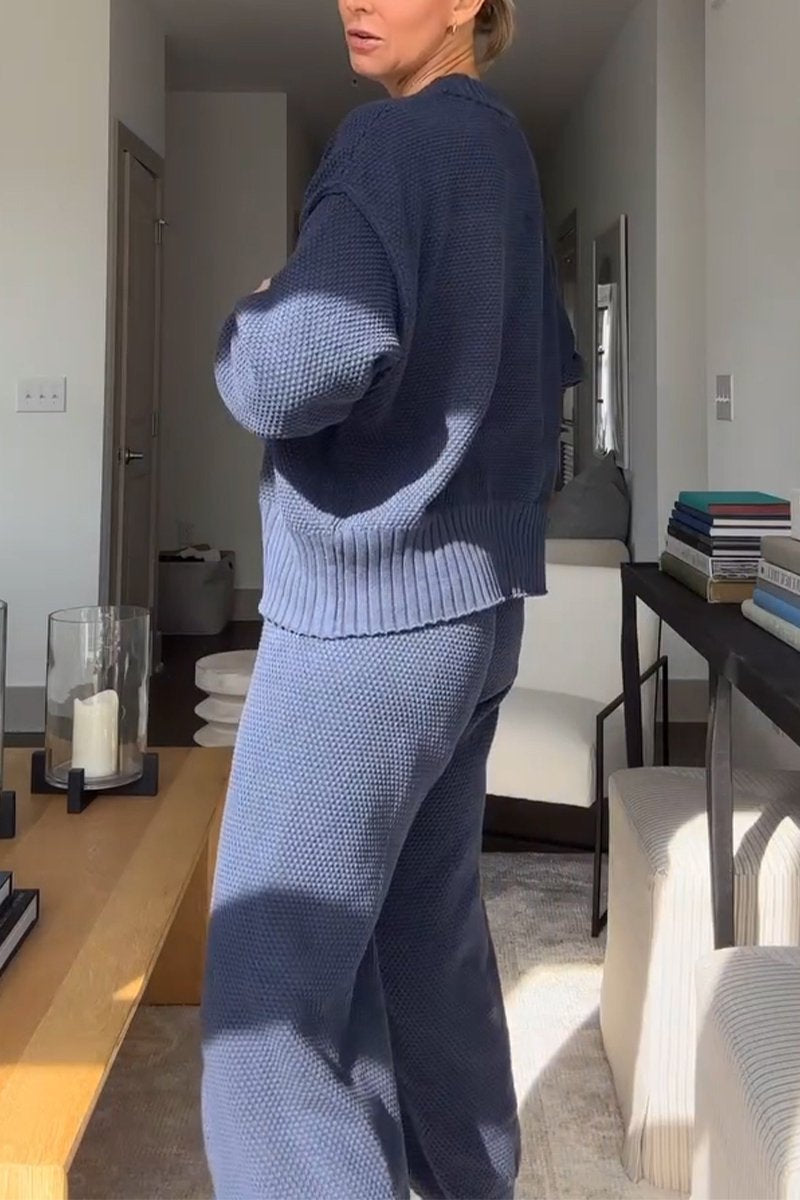 Adopt this versatile and elegant set, perfect for your casual days or your stylish outings. Composed of a long-sleeved knitted cardigan and matching tapered trousers, it combines comfort, style and practicality for all occasions.