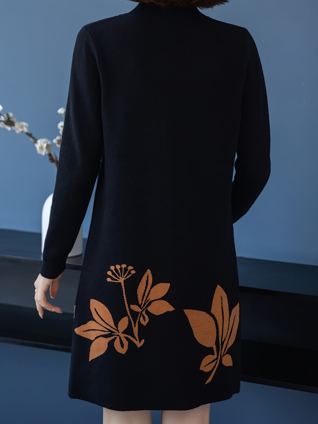 This floral sweater dress combines elegance and comfort for your cooler days. With its long sleeves and flowing design, it offers a flattering silhouette and a feminine touch. Perfect for fall and winter, it can be easily paired with boots or accessories for a chic and casual look.