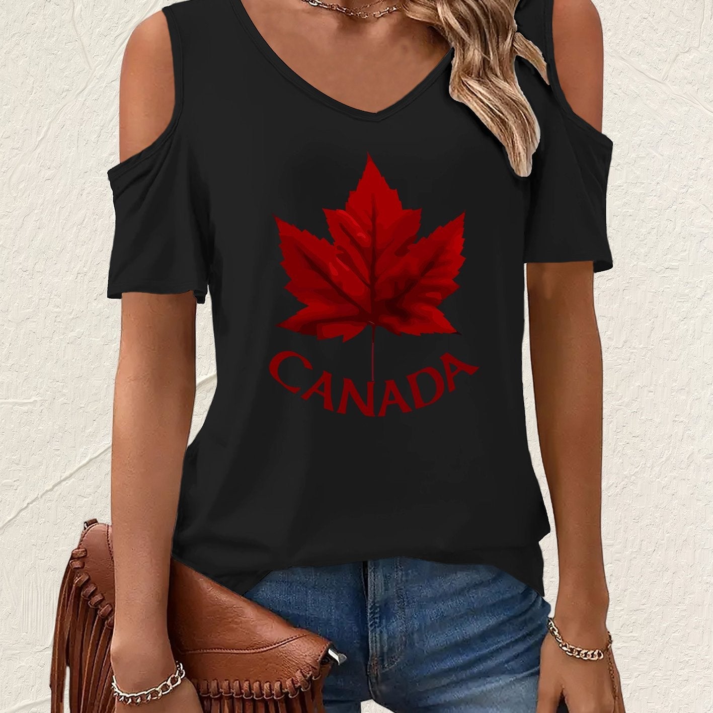 Crafted from lightweight polyester, this deep V-neck tee features a carefully placed maple leaf print for a unique casual look. Its regular fit and micro-elastic fabric ensure comfort and freedom of movement. Easy to care for, it's machine washable and perfect for your spring and summer outfits.