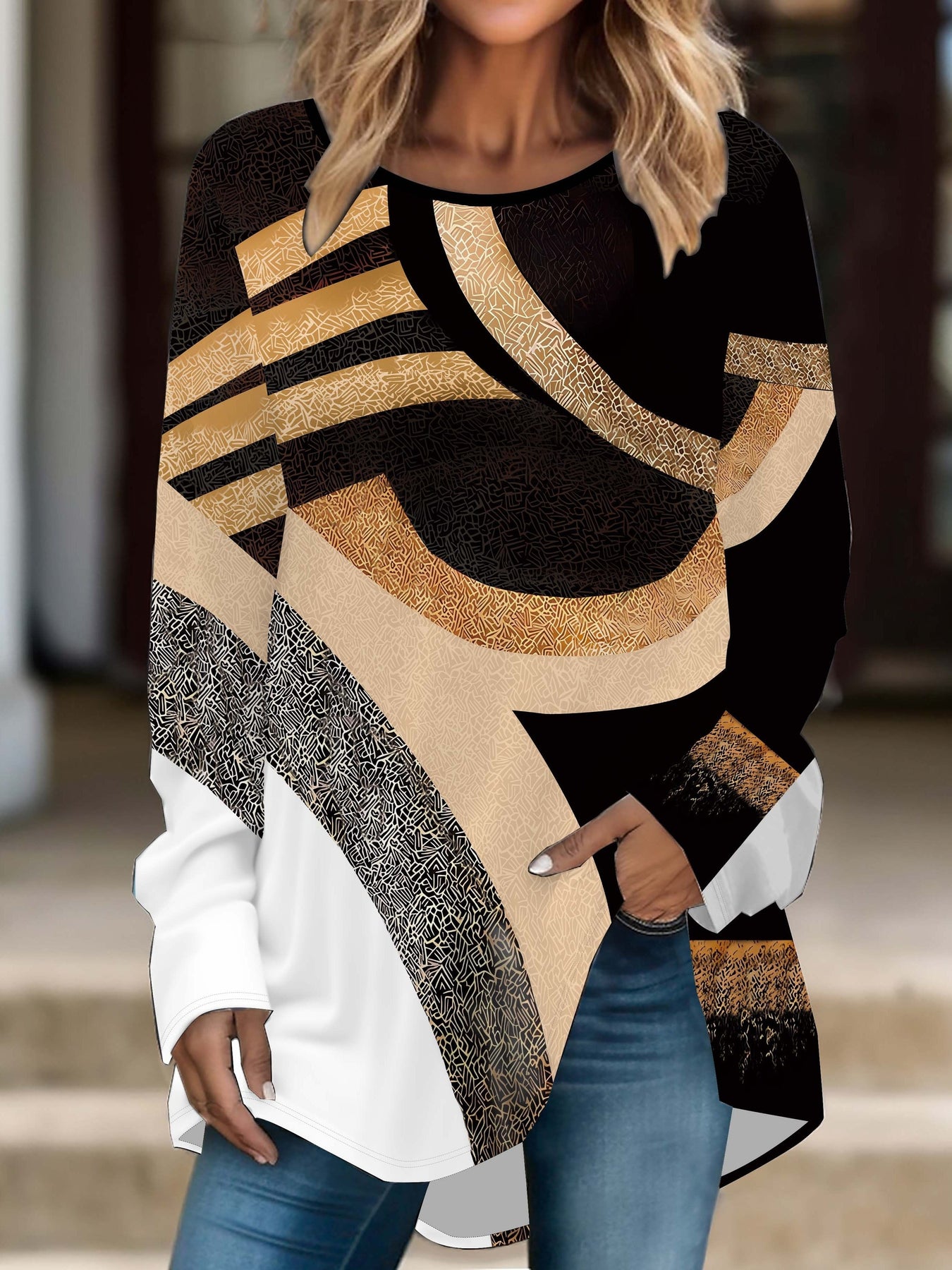 • Style : Long sleeve, round neck, 3D geometric print T-shirt