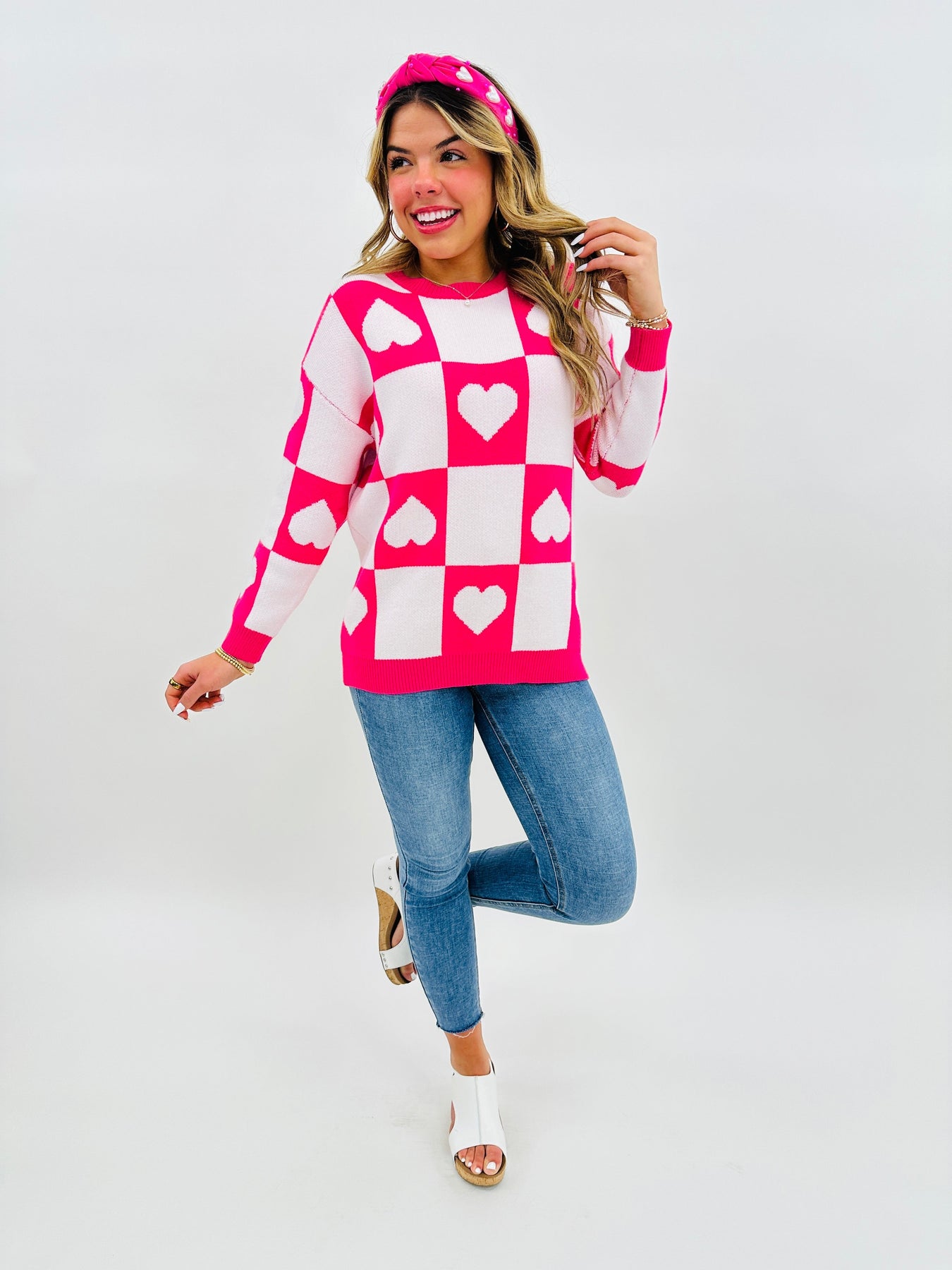 Ottilie - Valentine's Day Sweater with Checkered Hearts