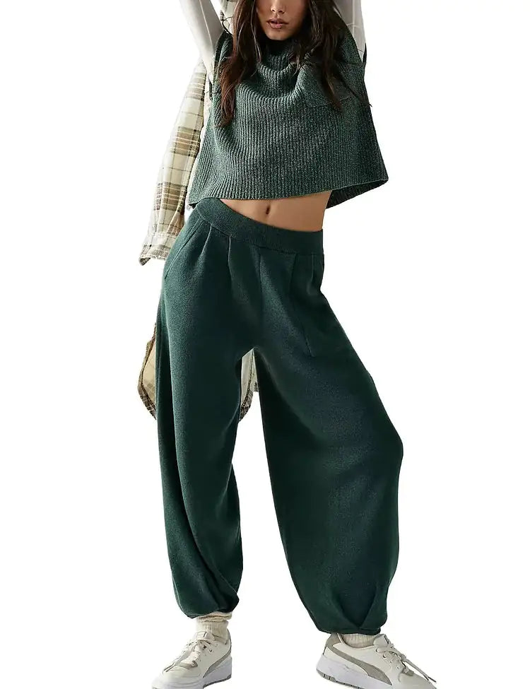 • Modèle : Pull à col rond et pantalon assorti à taille élastique.
